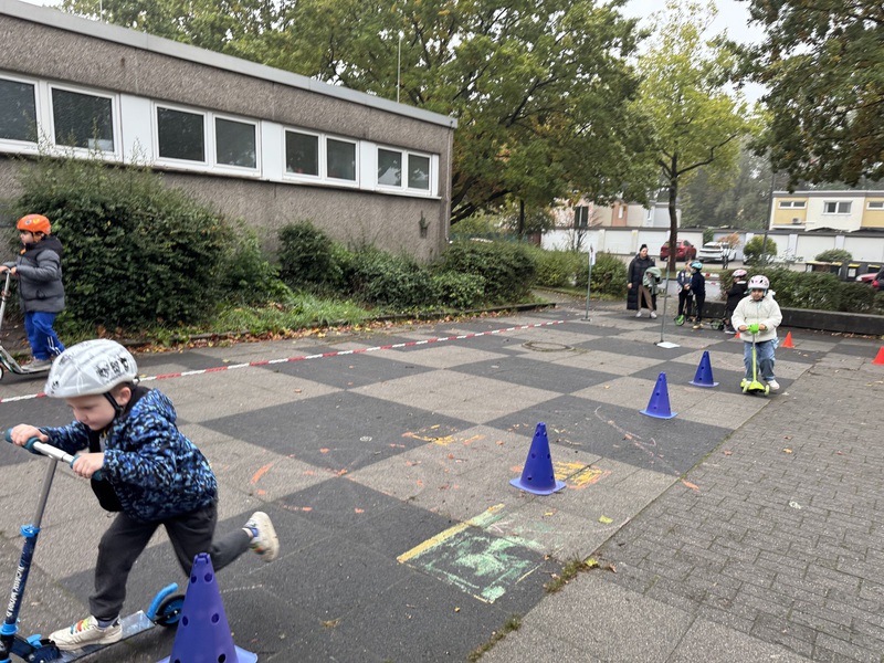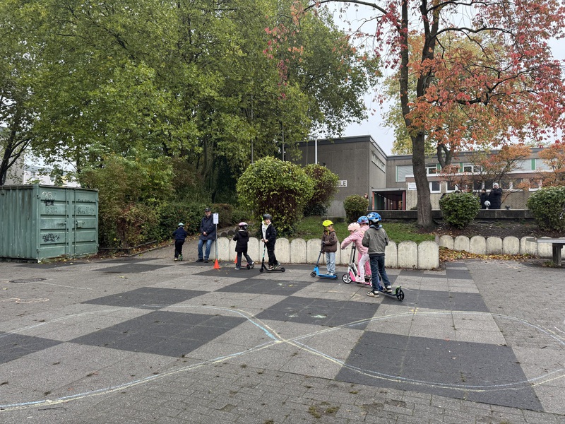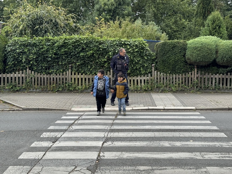 Wir haben geübt richtig über den Zebrastreifen zu gehen.